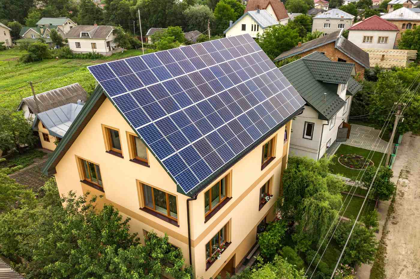 Solar panels showing in a view of neighborhood houses from up high - The Best Home Upgrades for Energy Efficiency and Safety