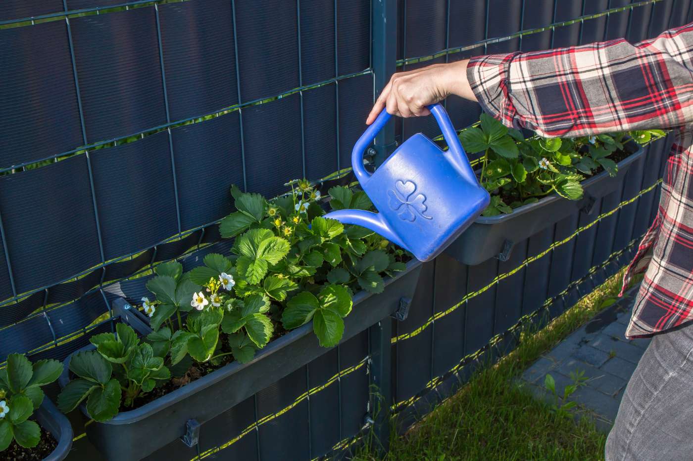 Person watering planters attached to fence - Outdoor Living: How Attractive Fencing Can Enhance Your Home