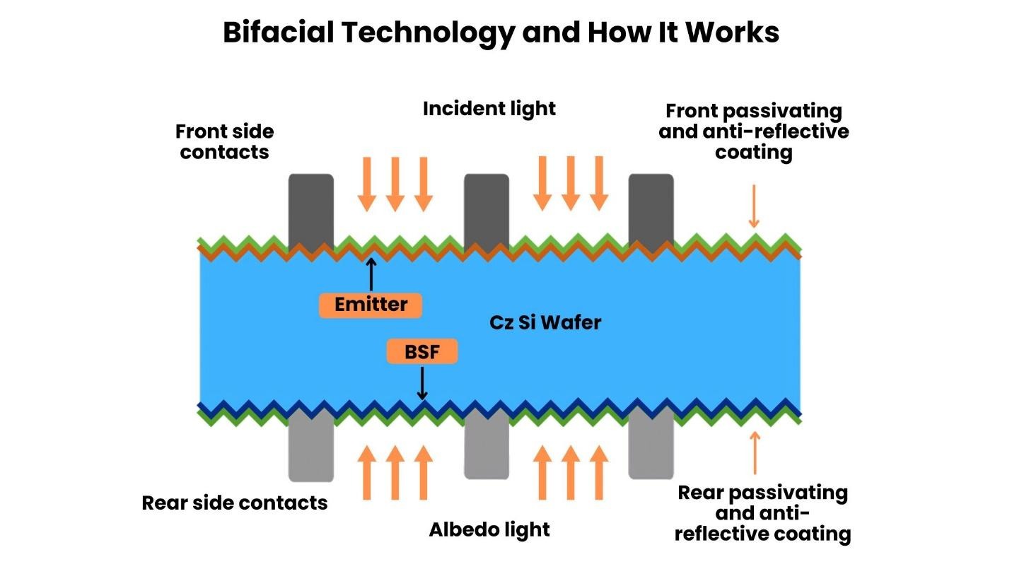 Bifacial solar panels generate electricity from both the front and rear surfaces of the module. Traditional panels rely on one side. Bifacial technology captures reflected and scattered light from surrounding surfaces, including roofing materials and ambient daylight.